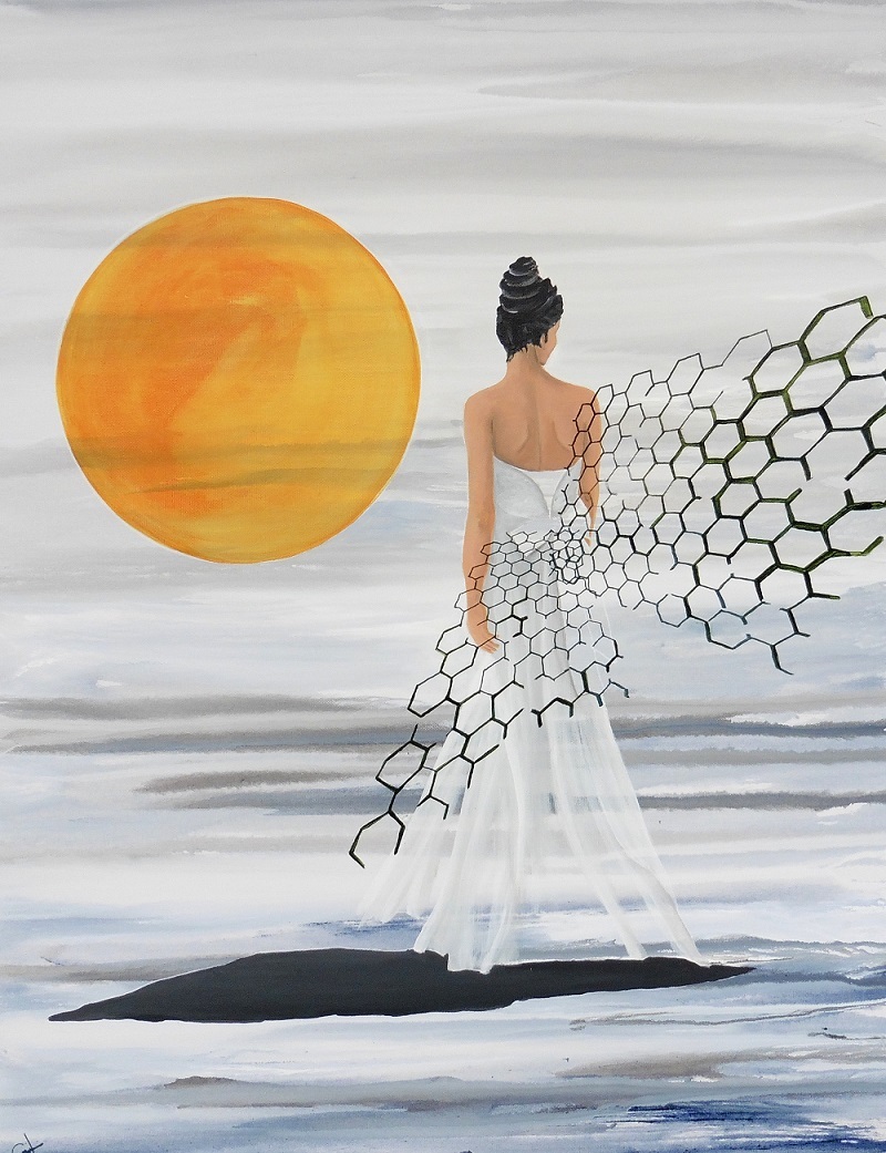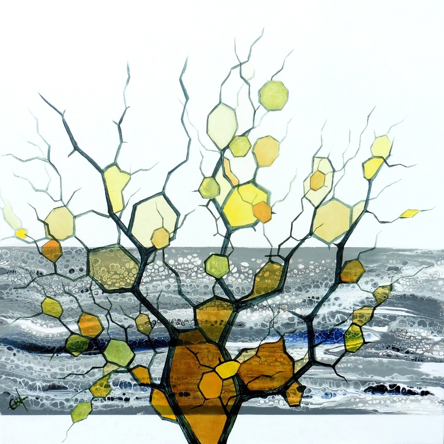 I 2018 blev jeg dels inspireret af den struktur honningbier skaber. En af naturens stærkeste former. Det er de malerier, hvor bikubestrukturen fremgår.