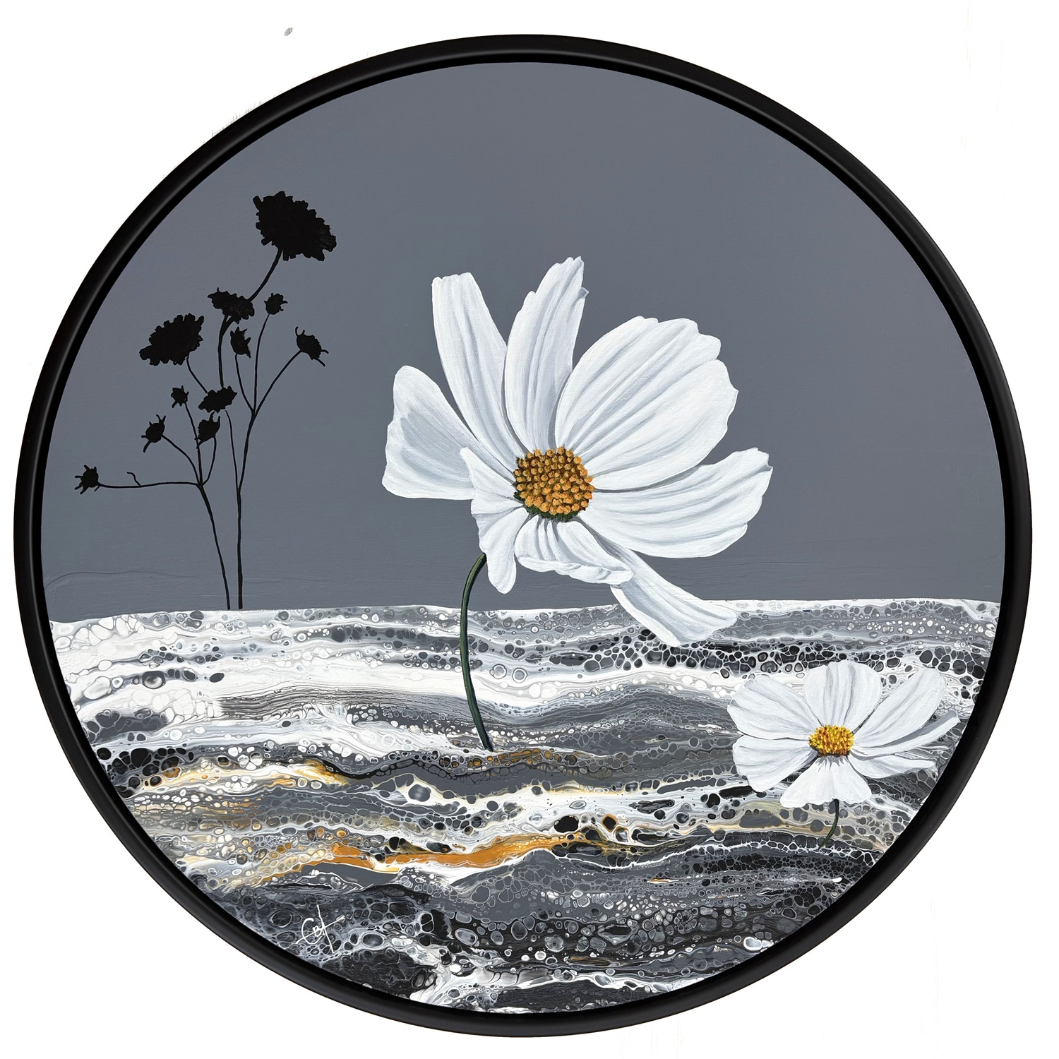 Ukuelig natur #824. Str. 80 cm dia. Akryl på lærred. Pris 5.500 kr. -